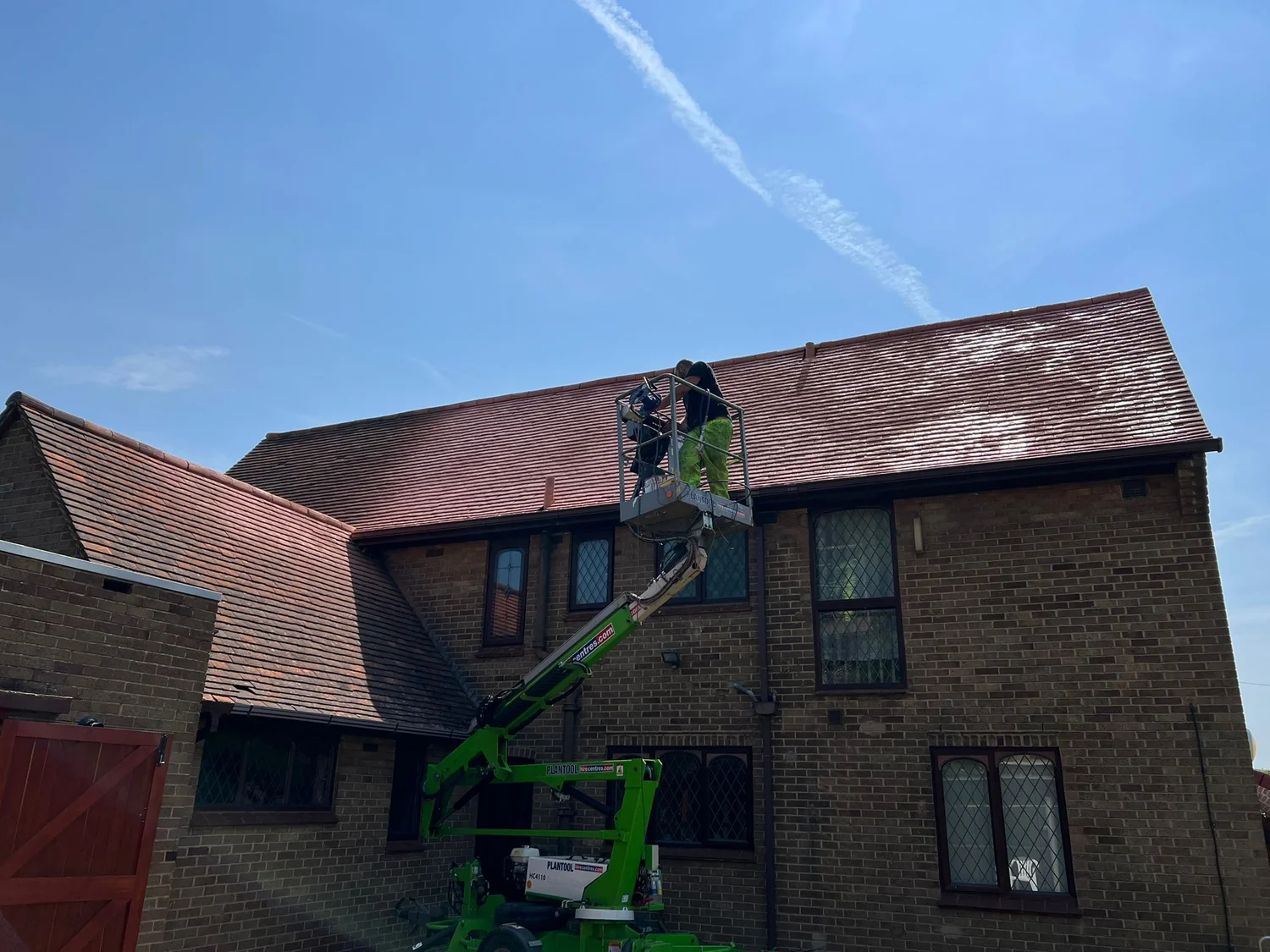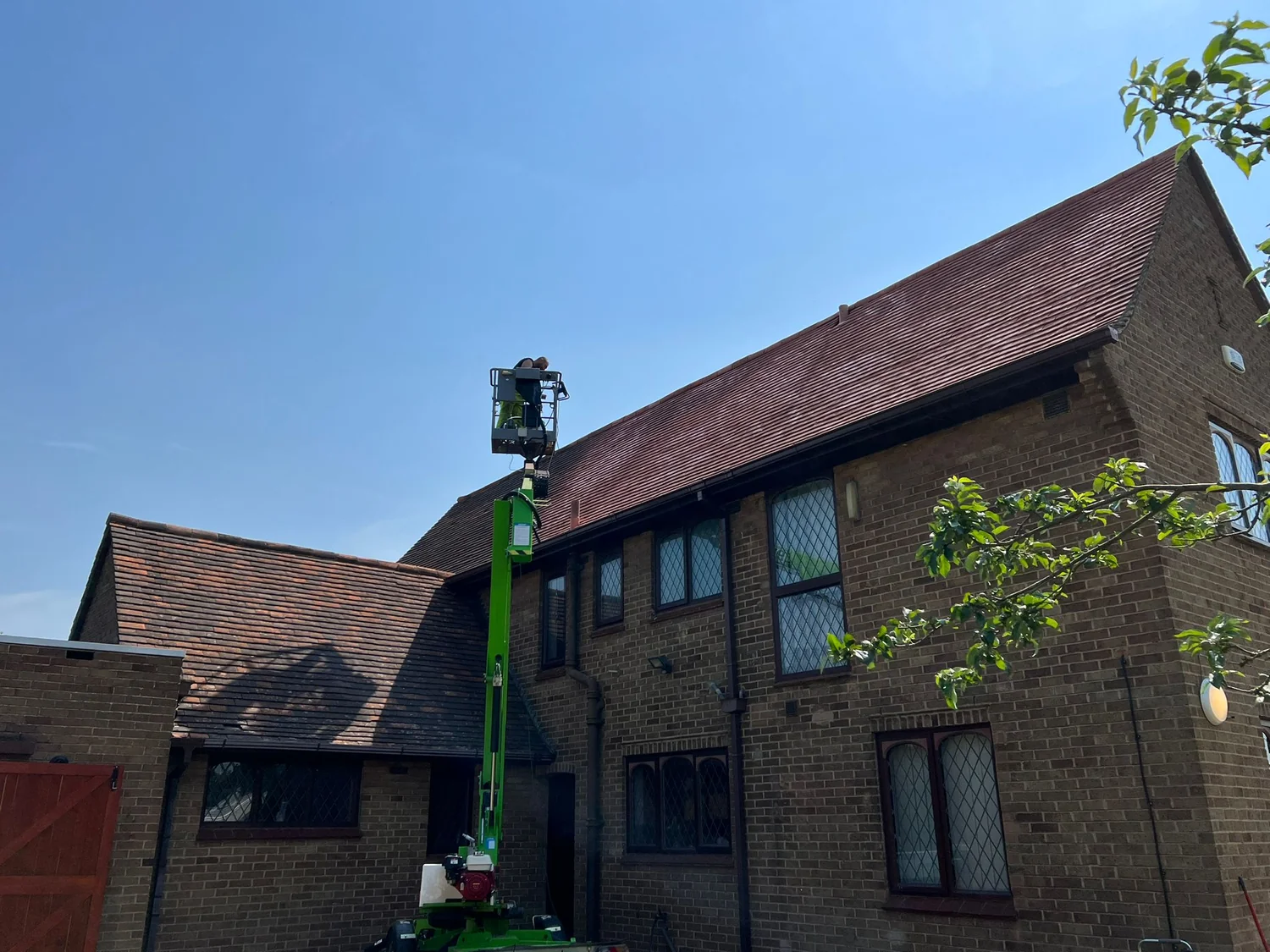 In March 2024, we carried out a full clay tile roof cleaning and painting project on a residential property in Northampton. The scope covered moss removal, pressure washing of the tile surfaces, surface preparation, and roof tile painting to give the roof a refreshed, uniform finish. Access was provided by MEWP (cherry picker) throughout the job.