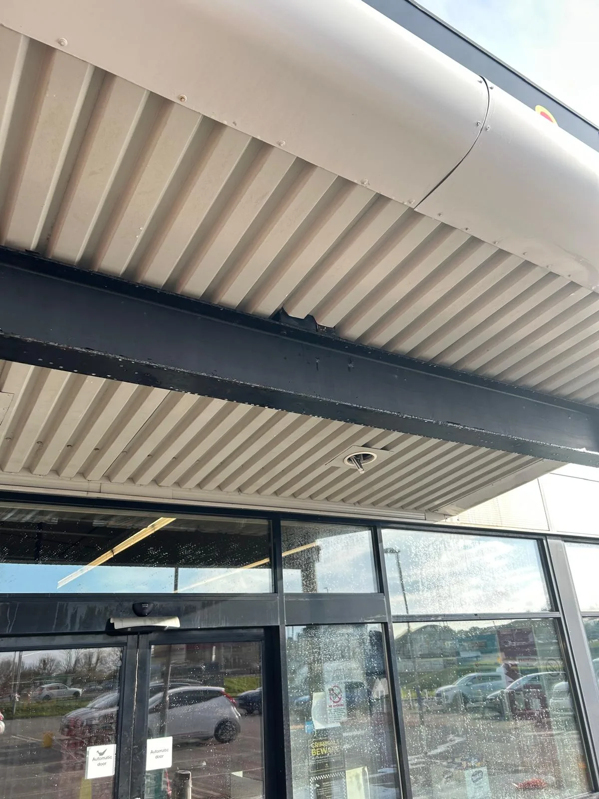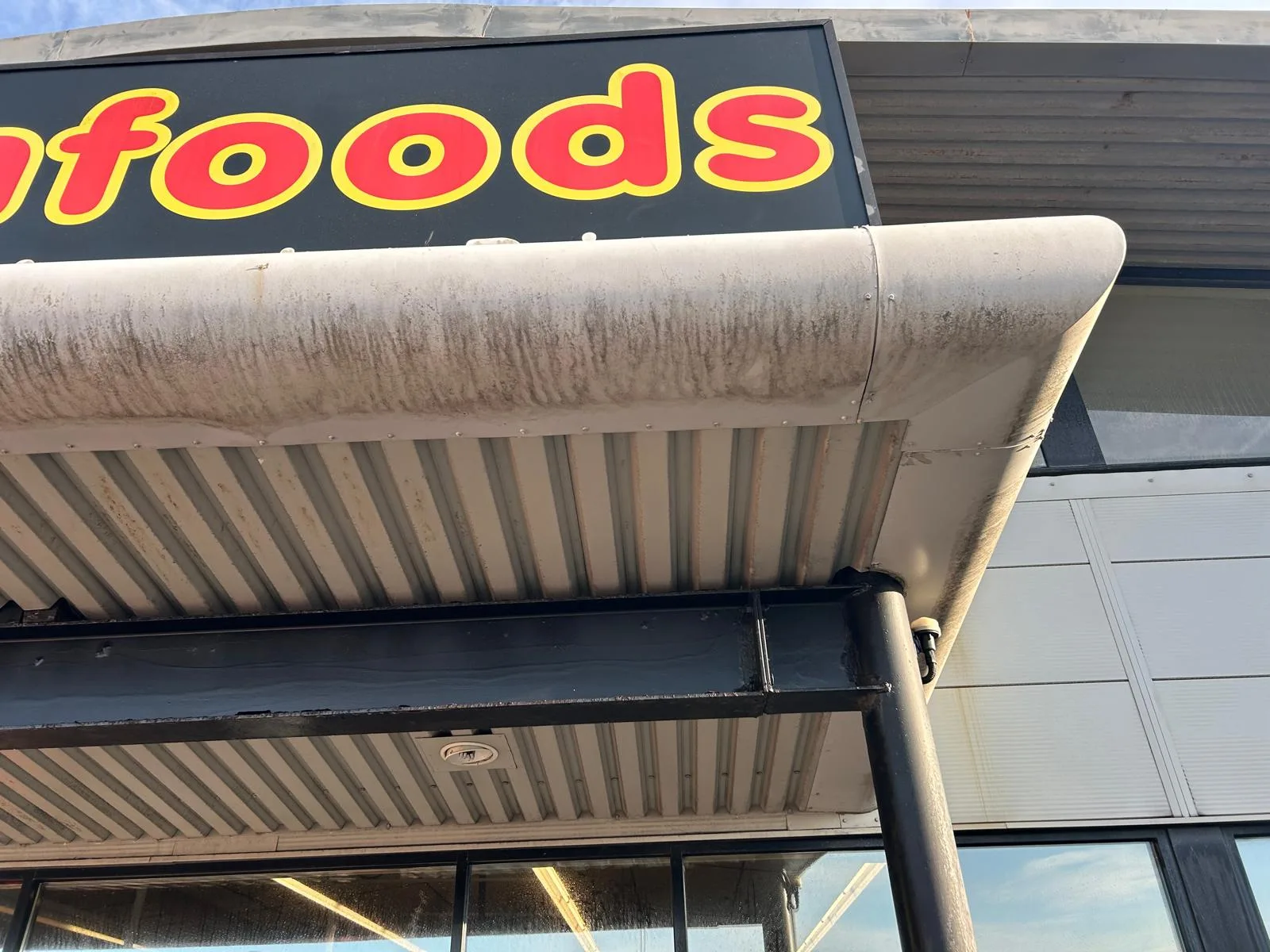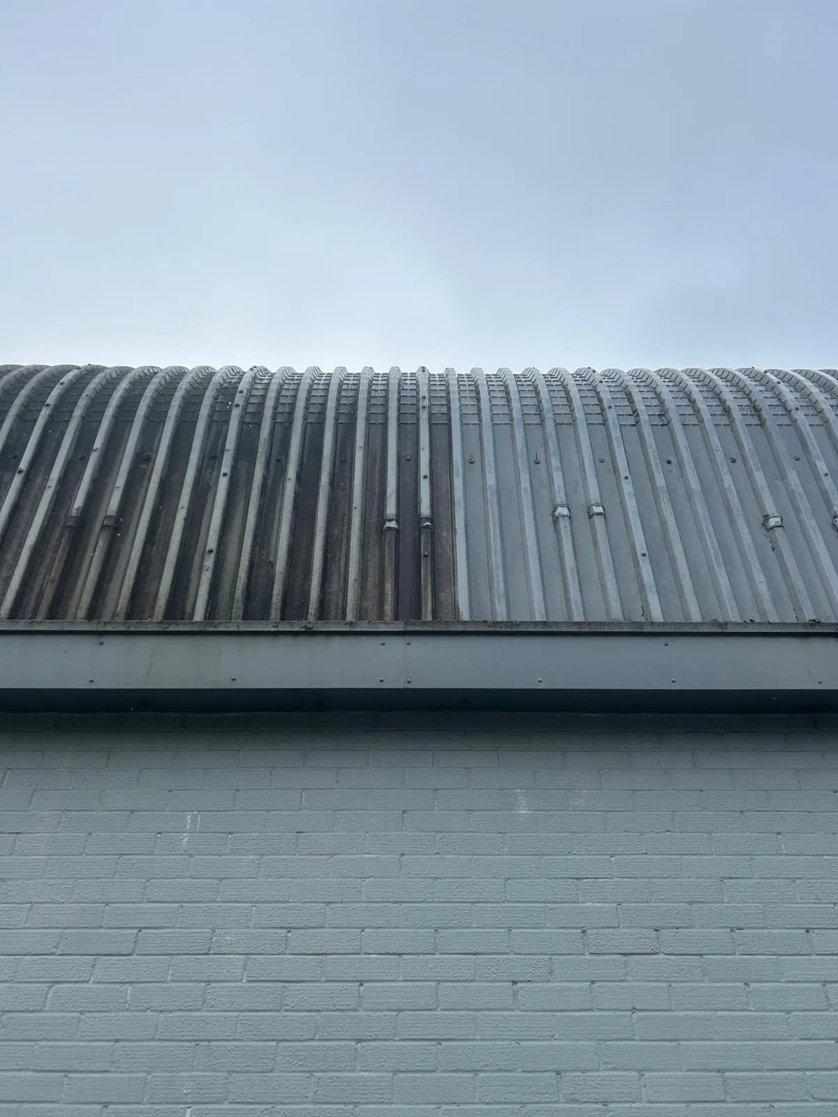 The supermarket remained open throughout the cleaning works, meaning public access areas had to stay safe and unobstructed at all times. The car park and entrance required careful management to avoid disruption to customers. Signage and frontage areas needed protection during cleaning to prevent damage. The corrugated roof profile added complexity - moss and debris collect in the troughs and require thorough treatment rather than a surface-level rinse.