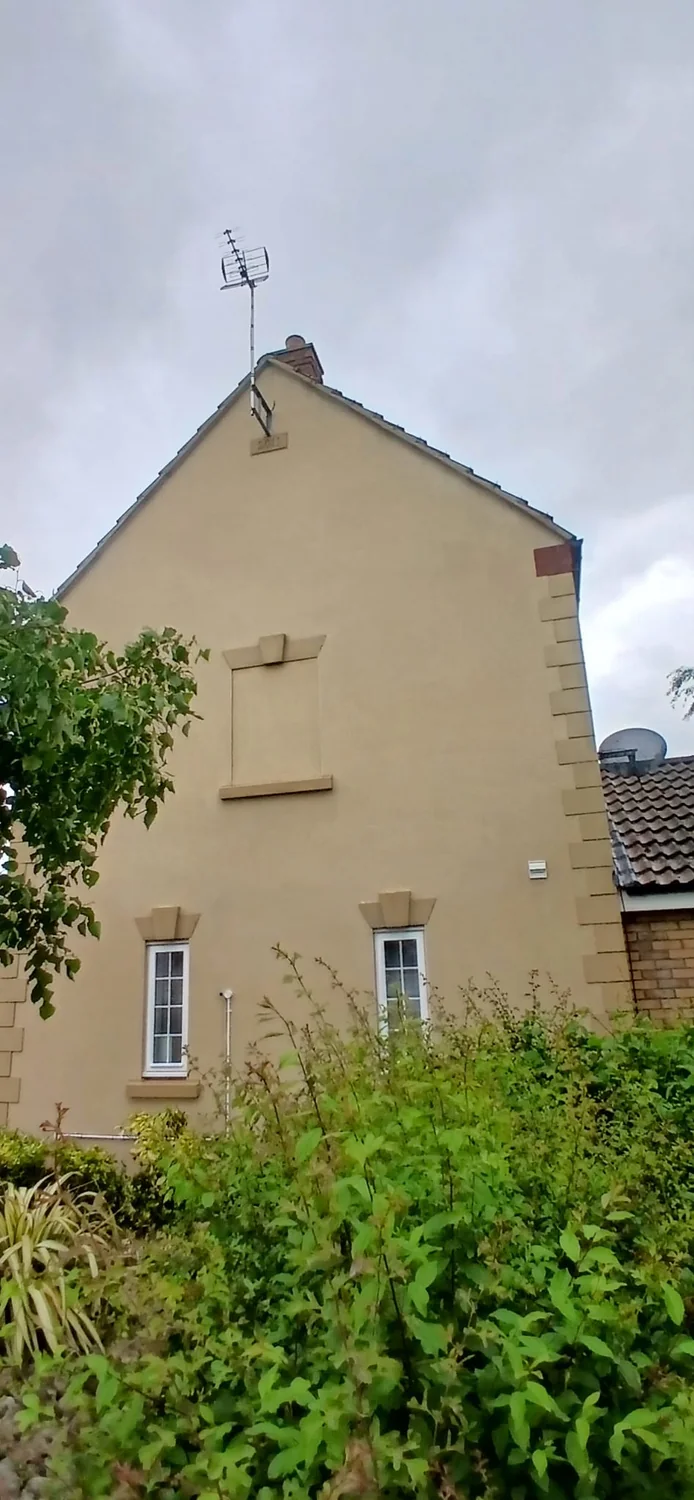 A full-house render clean on a residential property in Northampton, completed in September 2025. The property was heavily affected by black algae staining across all elevations, with the most concentrated growth on shaded and north-facing walls. The render was treated using a controlled bleach-based softwash, followed by a biocide application to help slow regrowth.