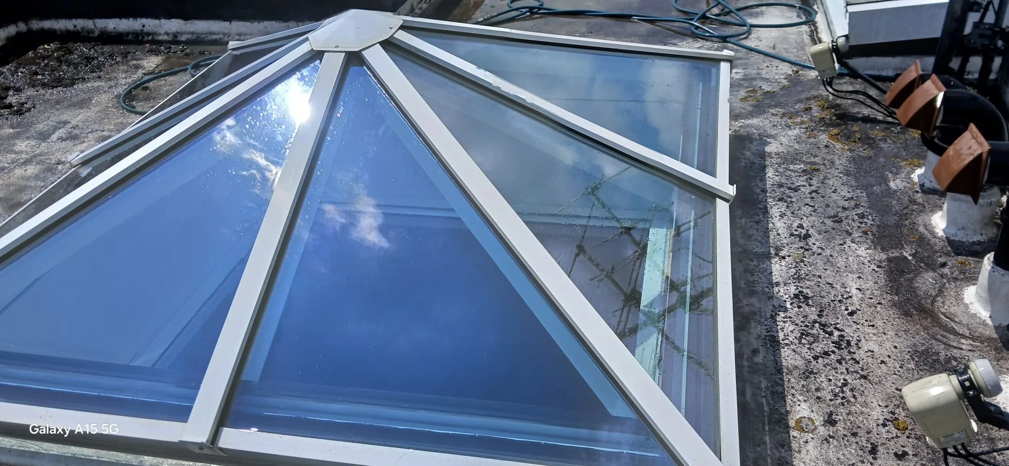 - Scope: Full roof clean, skylight cleaning, biocide treatment