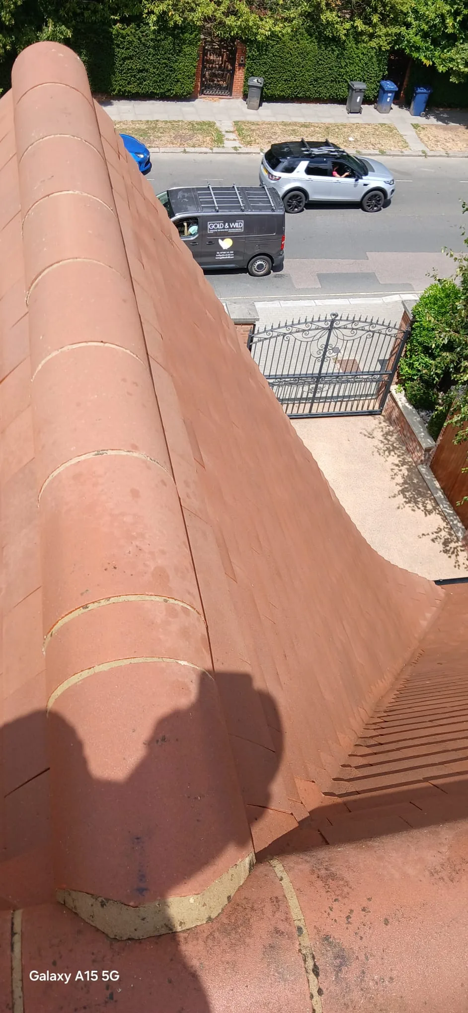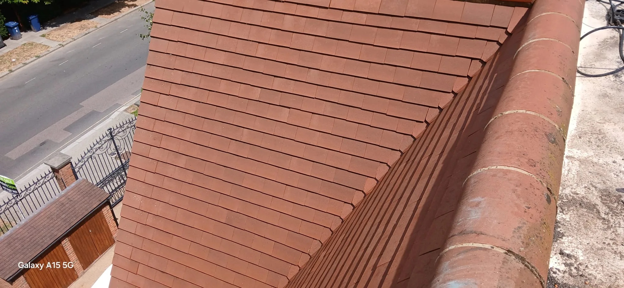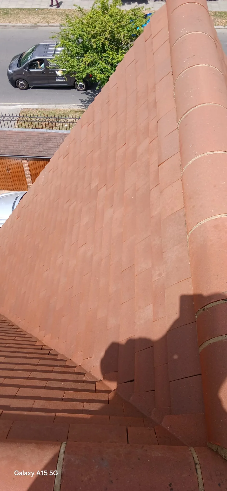 - Very steep pitches: The roof had pronounced slopes on multiple sides, requiring careful positioning, secure footing, and methodical section-by-section progress to maintain safety throughout.