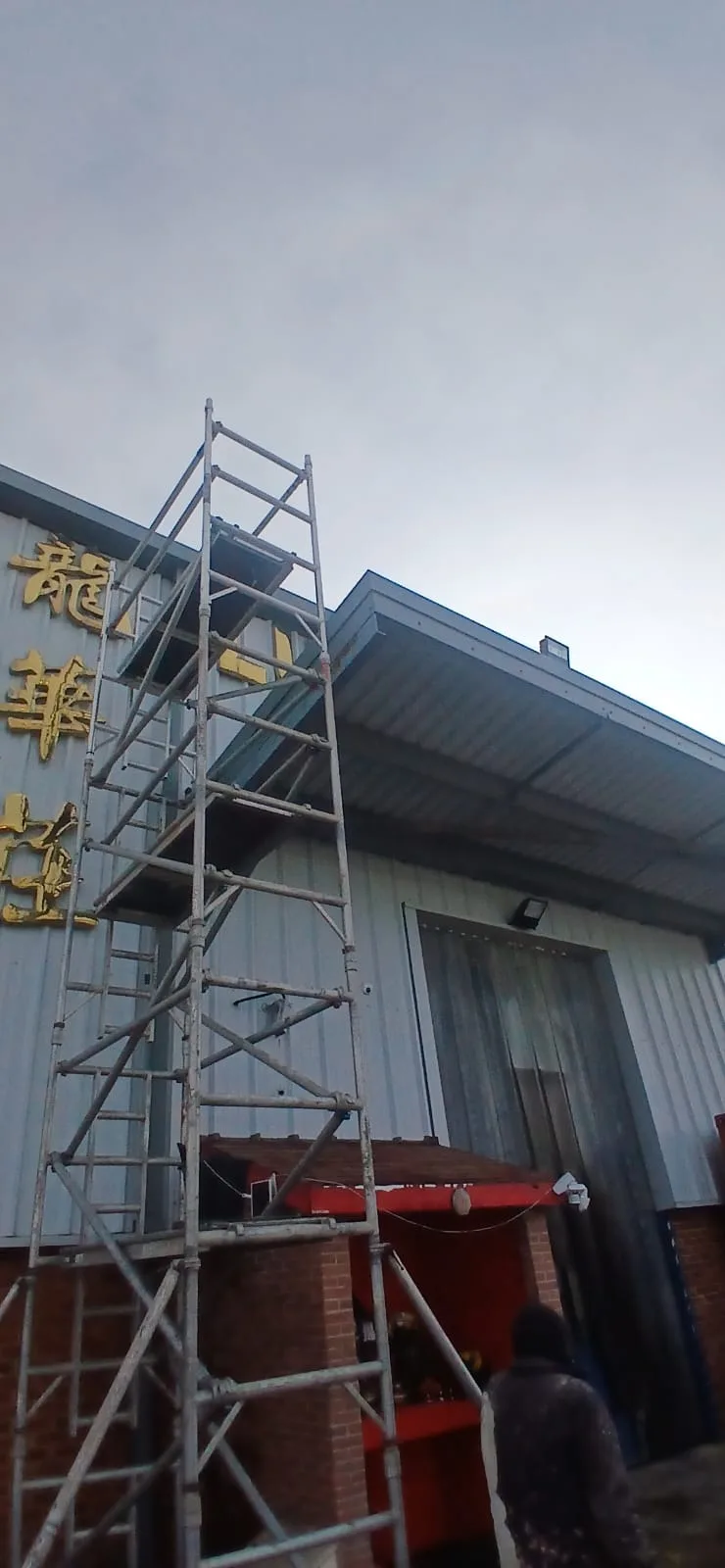 - Height access in a confined space: The building height required scaffold tower access rather than ground-level equipment. Working in an urban setting meant limited room for larger plant, and the scaffold setup needed to work within the available space around the building.