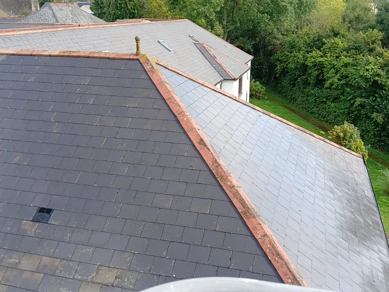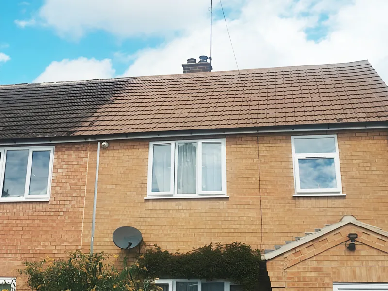 Once washing is completed, we apply a DDAC anti-algae biocide across the entire roof surface. This isn't a spray for aesthetic reasons, but one that forms a chemical barrier on the tile. Every time it rains, this barrier will activate. Over 6-12 months, the treatment reaches full effect as it penetrates deeper into the tile surface. The result lasts 4-5 years; only afterwards, the regrowth will start showing.